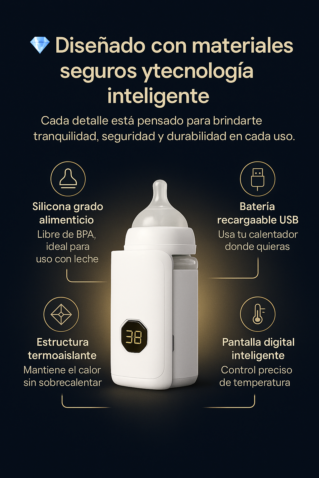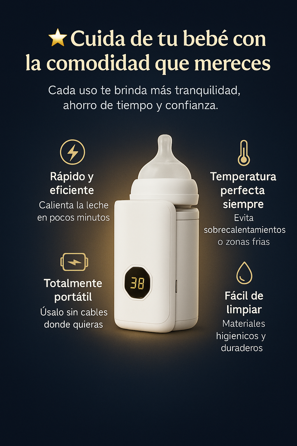 Simplifica la alimentación de tu bebé con este Calentador de Biberones y rápido portátil. Olvídate de buscar microondas o calentar agua. Este dispositivo compacto y de carga fácil garantiza que la leche o la fórmula de tu bebé estén a la temperatura perfecta, ya sea en casa, en el coche o de viaje.