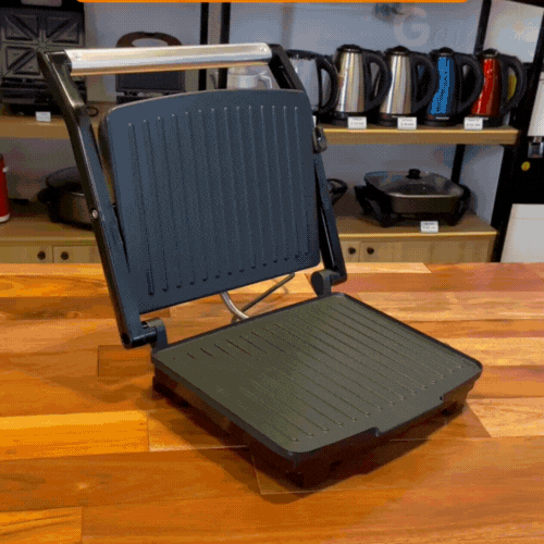 Ambas placas calientan al mismo tiempo, dorando uniformemente sin necesidad de dar vuelta el pan. Diseño compacto, moderno y con recubrimiento antiadherente que evita que los ingredientes se peguen.