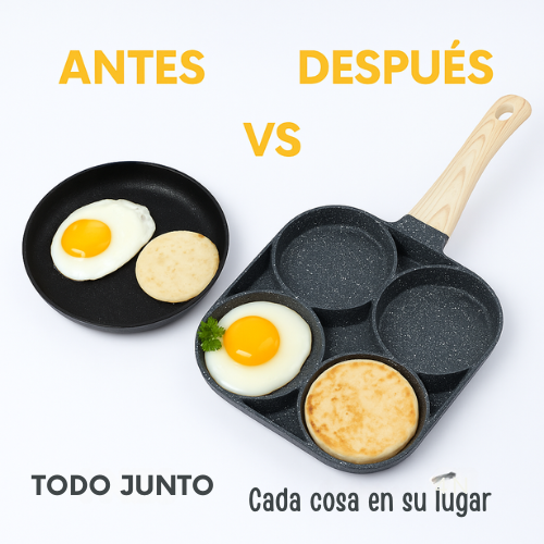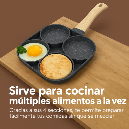 ¡Revoluciona tu manera de cocinar con la innovadora sartén de 4 espacios!